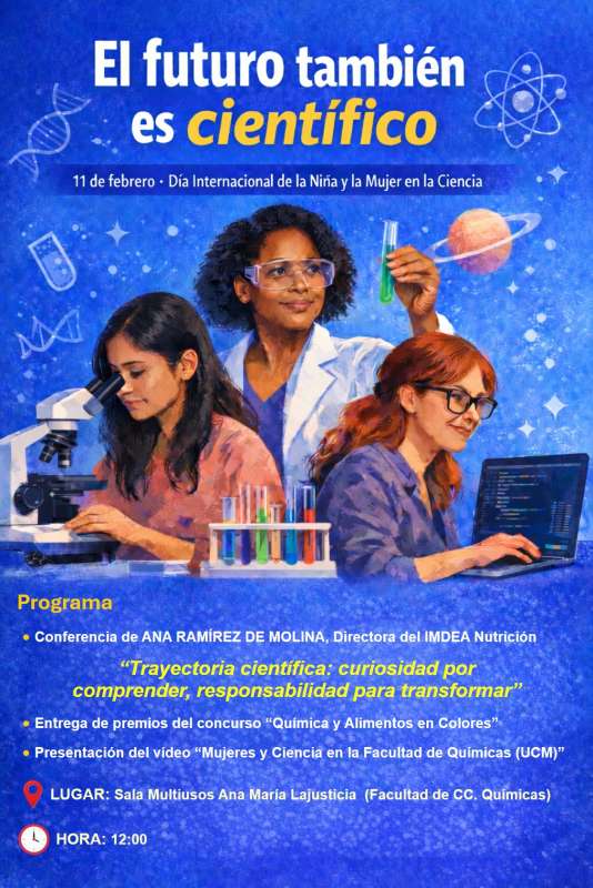 La Facultad de Ciencias Químicas ha organizado para el día 11 de febrero un acto con motivo del Día Internacional de la Niña y la Mujer en la Ciencia. Con este acto se pretende promover el acceso y la participación de las mujeres en disciplinas científicas (STEM). Así como, fomentar vocaciones científicas y poner en valor los aportes de las mujeres en la ciencia, en concreto de las mujeres de nuestra Facultad.